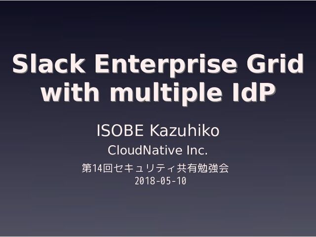 multiple IdP ISOBE Kazuhiko CloudNative Inc. 第14回セキュリティ共有勉強会 2018-05-10