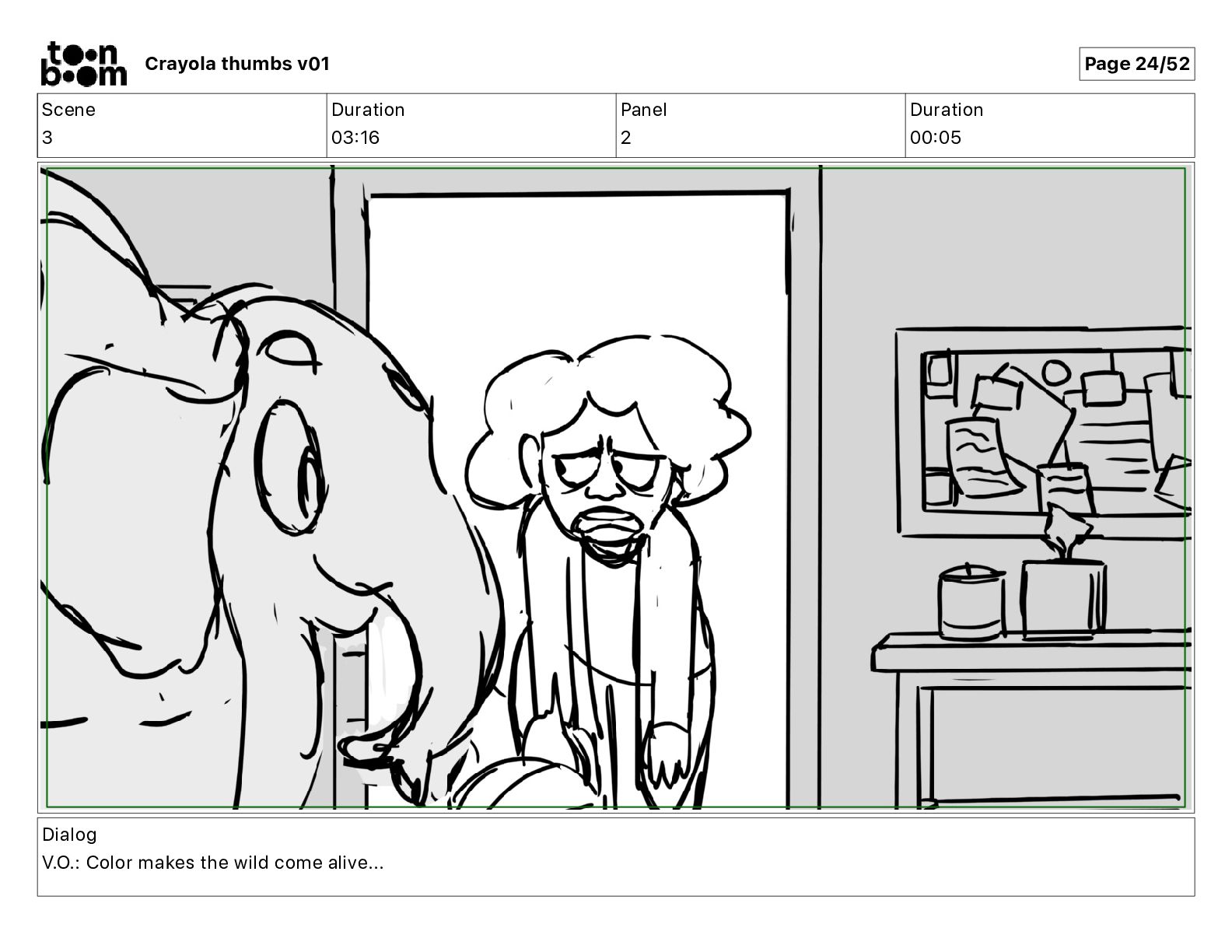 Dialog V.O.: Color makes the wild come alive... Crayola thumbs v01 Page 24/52