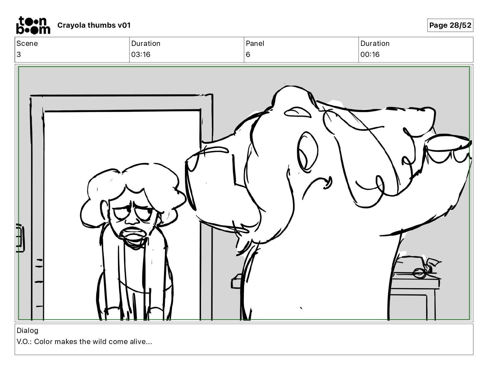 Dialog V.O.: Color makes the wild come alive... Crayola thumbs v01 Page 28/52