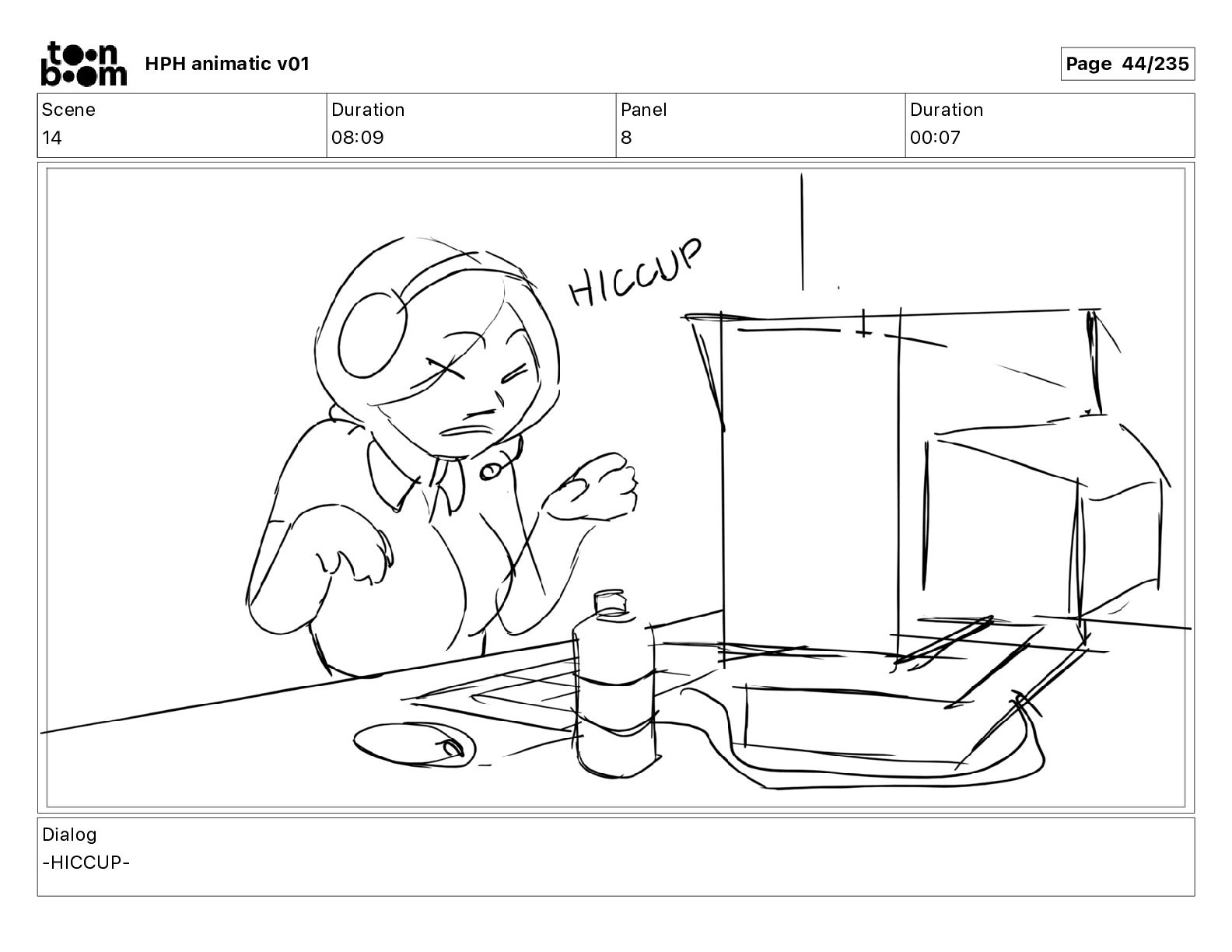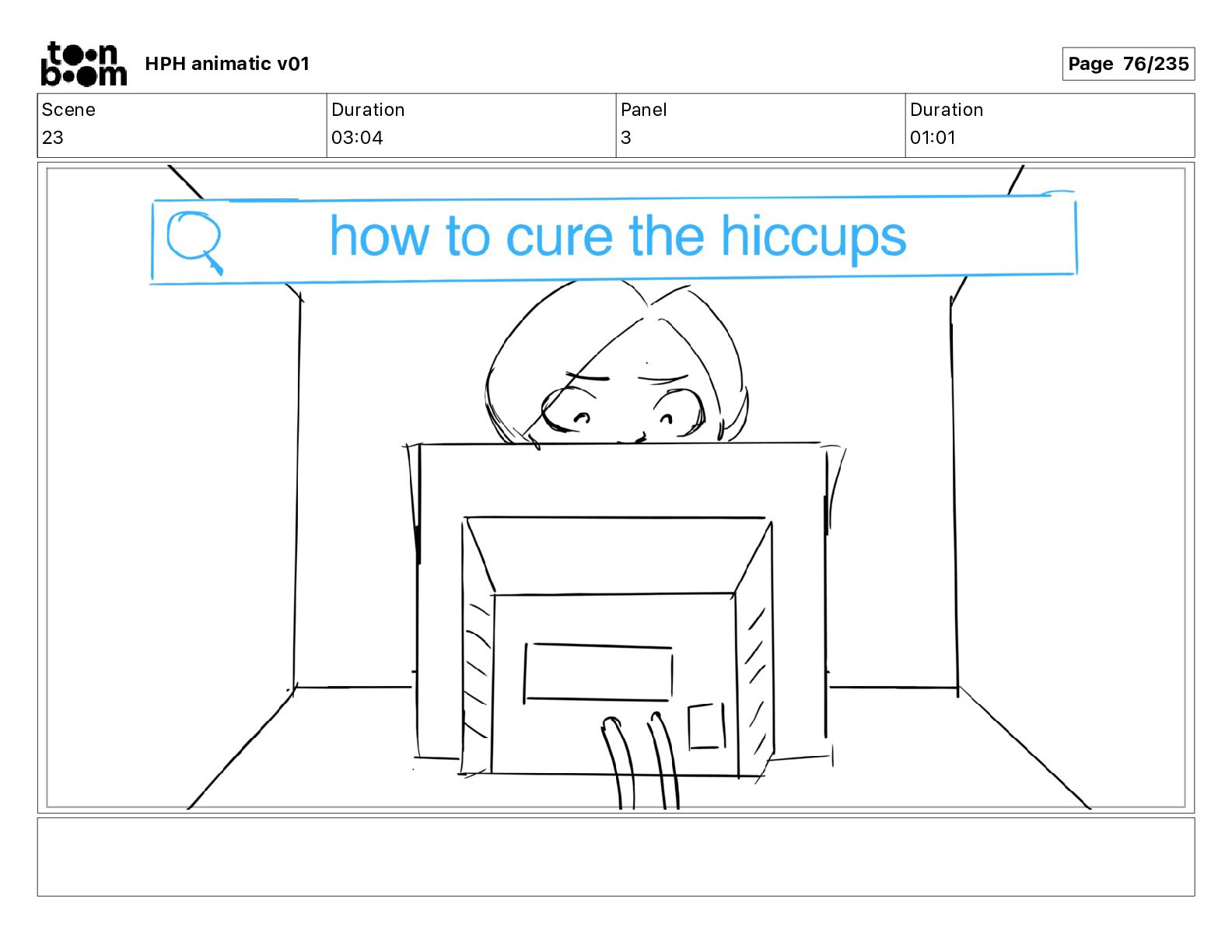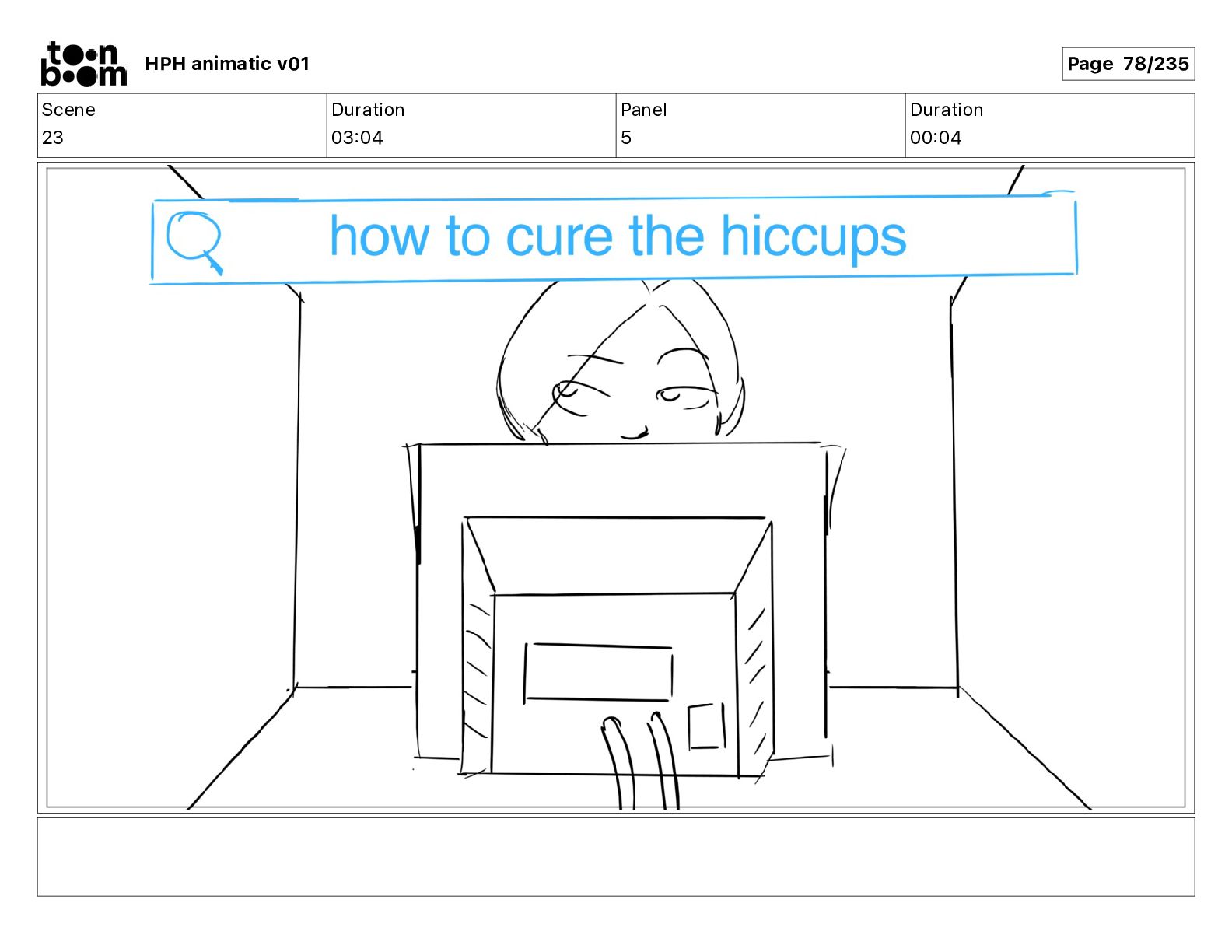 A frazzled IT worker develops an untimely case of hiccups. With just minutes before her shift resumes, she embarks on a frantic quest to cure them using internet-sourced remedies.