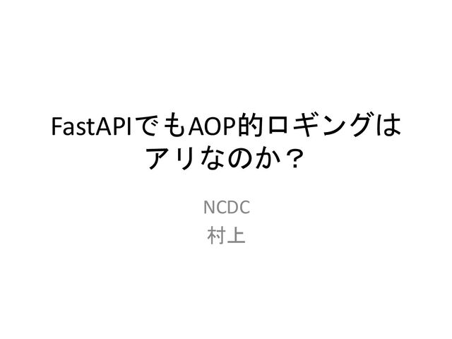 FastAPIでもAOP的ロギングは アリなのか? NCDC 村上