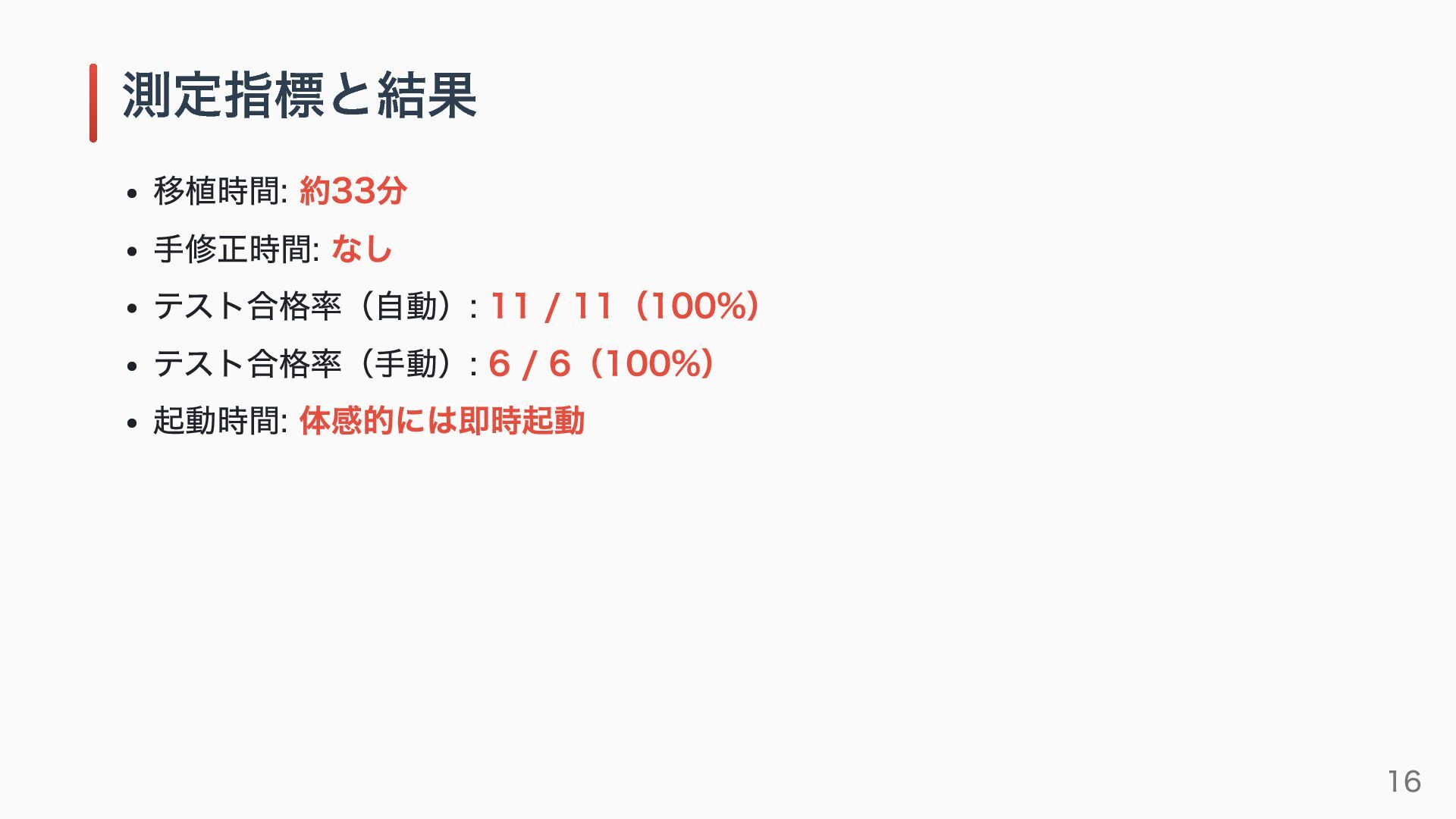 移植時間: 約33分 手修正時間: なし テスト合格率(自動): 11 / 11(100%) テスト合格率(手動): 6