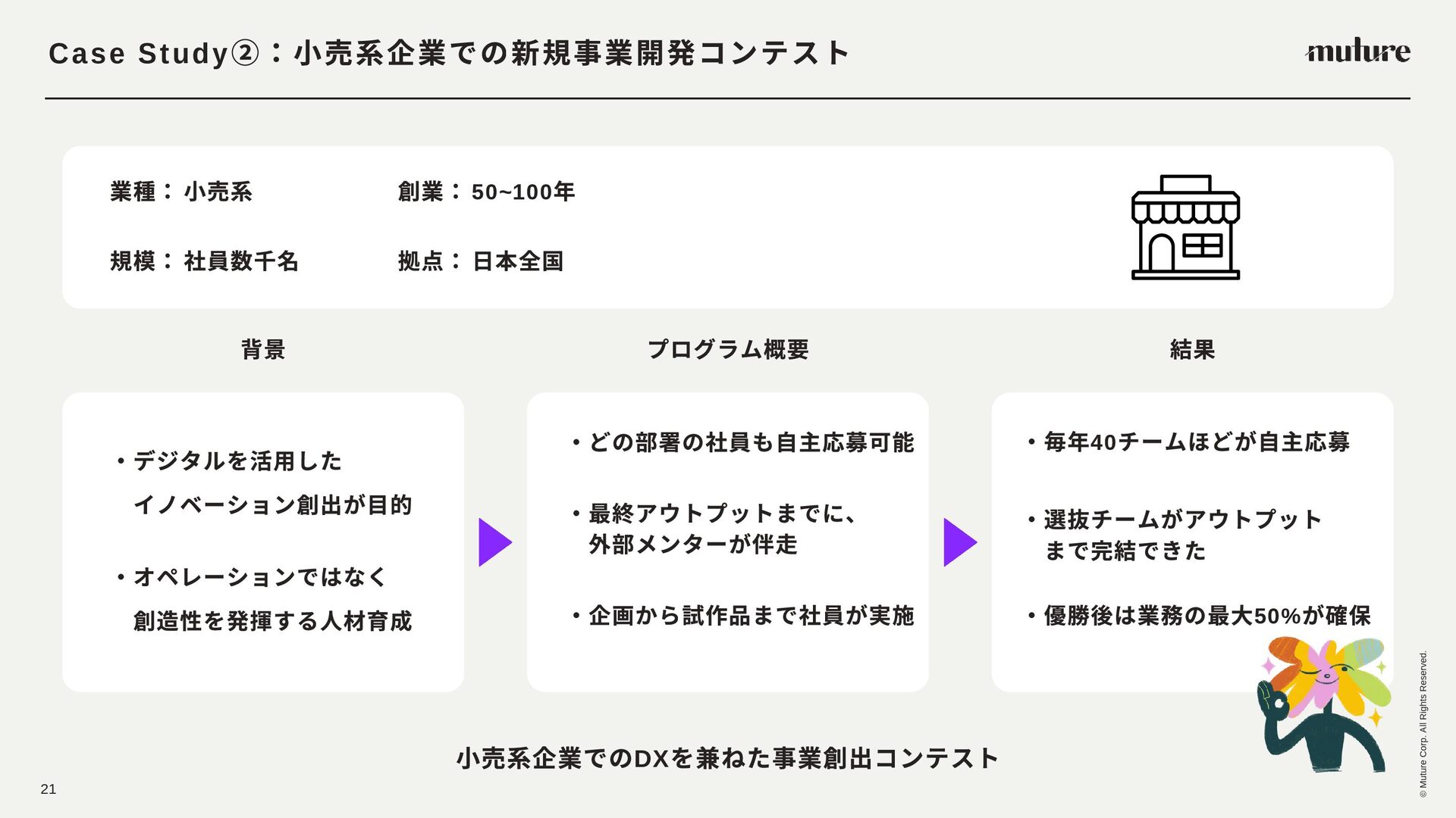 16. Case Study ②:小売系企業での新規事業開発コンテスト © Muture Corp. All Rights Reserved. 小売系企業でのDX