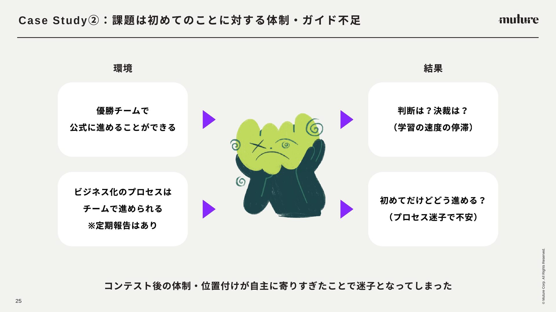 20. Case Study ②:課題は初めてのことに対する体制・ガイド不足 © Muture Corp. All Rights Reserved. コンテスト後の体制・位置付けが自主に寄りすぎたことで迷子となってしまった