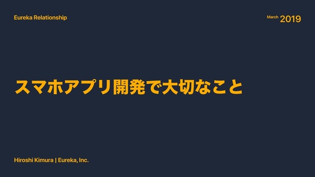 Eureka Relationship Hiroshi Kimura | Eureka, Inc. 2019 March εϚϗΞϓϦ։ൃͰେͳ͜ͱ
