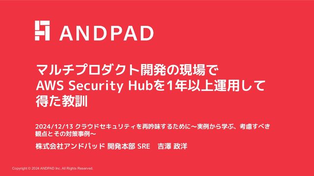 AWS Security Hubを有効化したけど見てない人に向けたDevSecOpsの実現方法 / #kayac_andpad_event - Speaker Deck