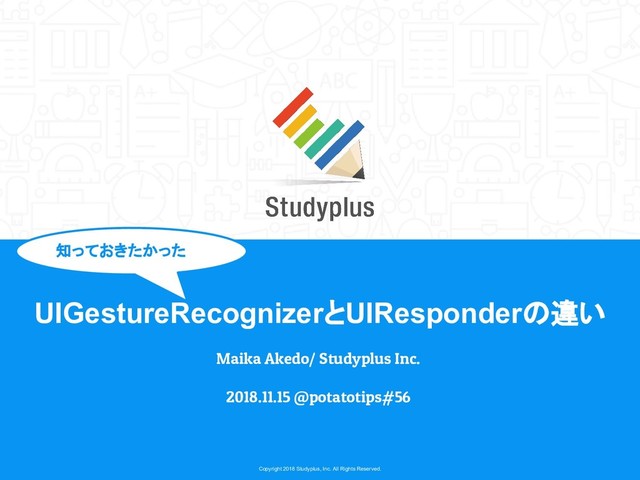 2. UIResponderとは ✎ ユーザーのあらゆる操作(イベント) に応答するクラス ✎ 今回は以下のメソッドが比較対象 ’ func touchesBegan(Set<UITouch>, with: