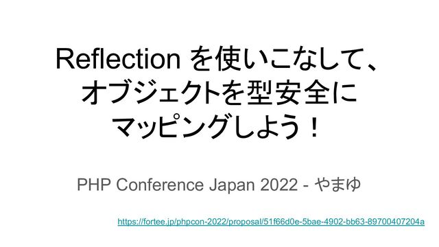 Reflection を使いこなして、 オブジェクトを型安全に マッピングしよう! PHP Conference Japan 2022 - やまゆ