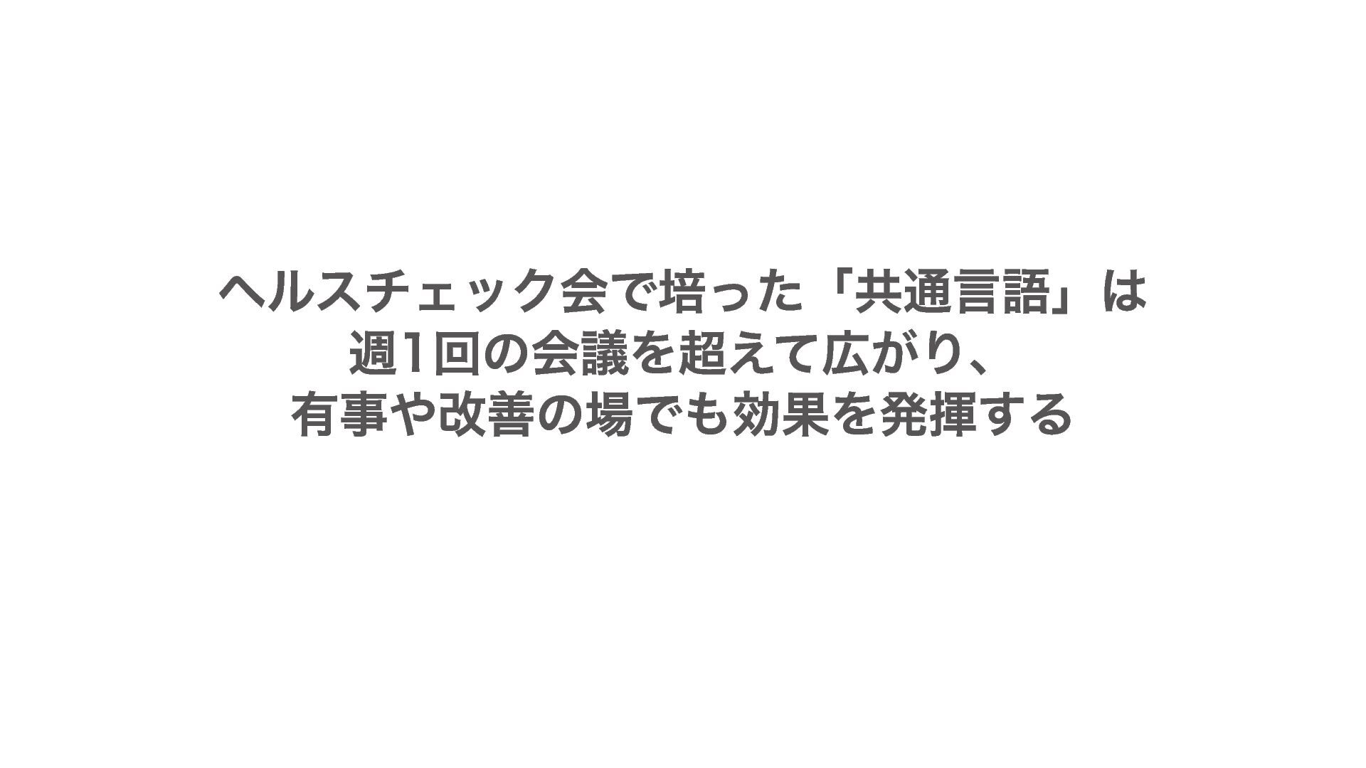 ヘルスチェック会で培った「共通言語」は 週1回の会議を超えて広がり、 有事や改善の場でも効果を発揮する