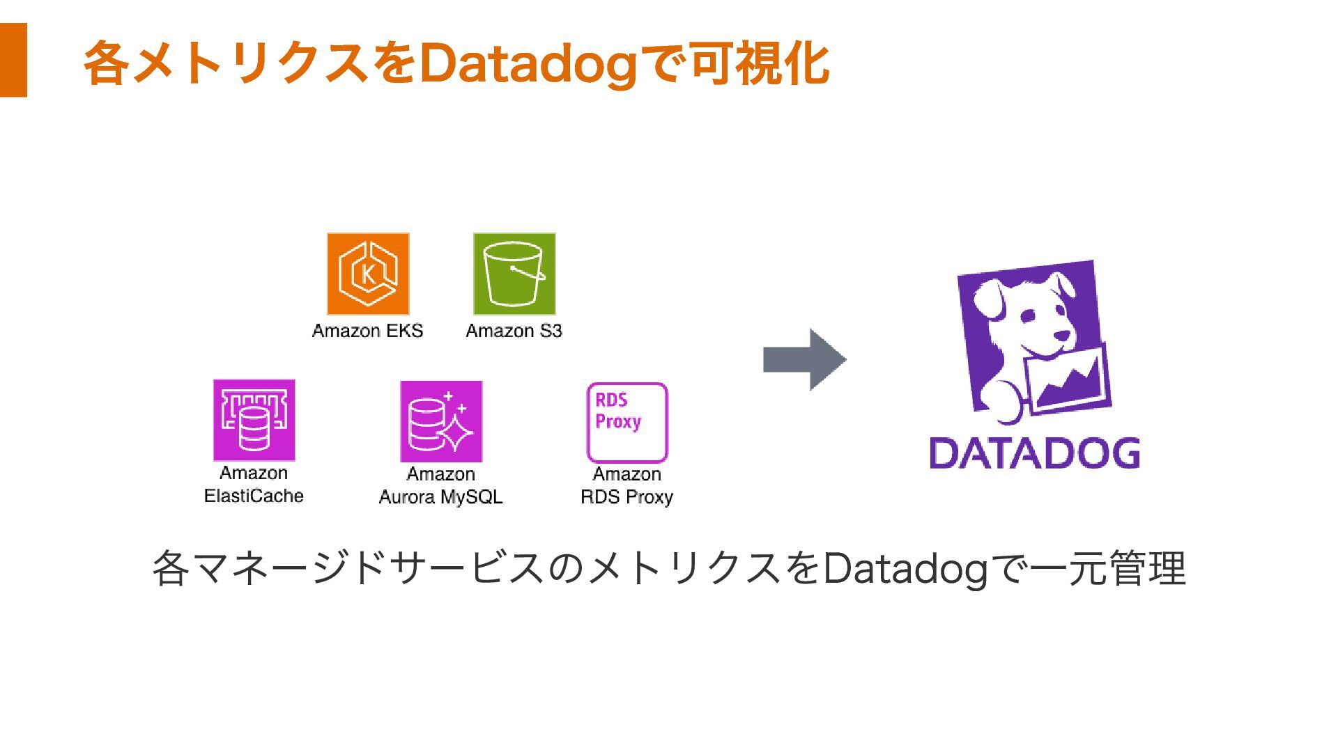 各メトリクスをDatadogで可視化 各マネージドサービスのメトリクスをDatadogで一元管理