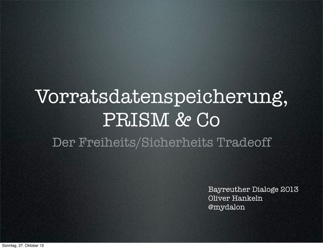 Das sind die Slides zum Workshop, den ich heute bei den Bayreuther Dialogen 2013 zum Thema "Was ist Dir Deine Freiheit wert?" gehalten habe