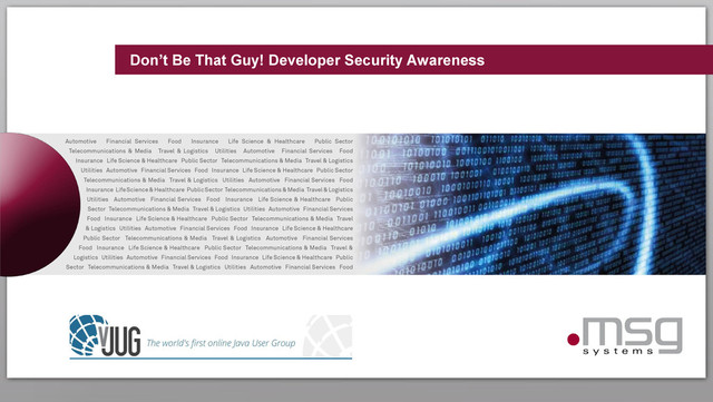 4.0 http://www.oracle.com/technetwork/java/seccodeguide-139067.html • The CERT Oracle Secure Coding Standard for Java https://www.securecoding.cert.org/confluence/display/java/The+CERT+Oracle+Secure+Coding+Standard+for+Ja va • Java Coding Guidelines: 75 Recommendations for Reliable and Secure Programs http://www.informit.com/store/java-coding-guidelines-75-recommendations-for-reliable-9780133439519 • OWASP Developer Guide 2013 https://www.owasp.org/index.php/Category:OWASP_Guide_Project M.Eisele - @myfear - http://blog.eisele.net 51 © msg Applied Technology Research, December 2013