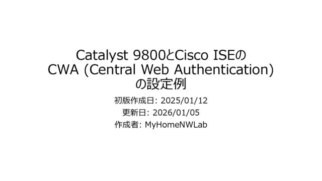 9800のWeb UIでの送信元のVRFやInterfaceの指定はVersionによって若干 異なります。筆者の資料では v17.13.1 以上を想定しています。 • Cisco ISEは v3.3 系のデフォルト設定であるのを前提としています。 • Policy ProfileのNAC State (nac)の設定は、CSCwk45246 によりWeb UIからだと show running-config に反映されない事象があります。該当個所で補足します。