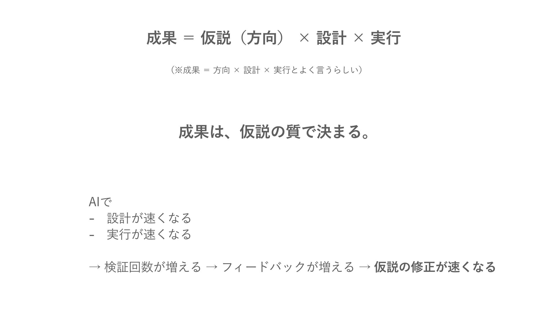 ՌʹԾઆʢํʣʷઃܭʷ࣮ߦ "*Ͱ ઃܭ͕͘ͳΔ ࣮ߦ͕͘ͳΔ ˠݕূճ͕૿͑ΔˠϑΟʔυόοΫ͕૿͑ΔˠԾઆͷमਖ਼͕͘ͳΔ ՌɺԾઆͷ࣭Ͱܾ·Δɻ ʢ˞Ռʹํʷઃܭʷ࣮ߦͱΑ͘ݴ͏Β͍͠ʣ