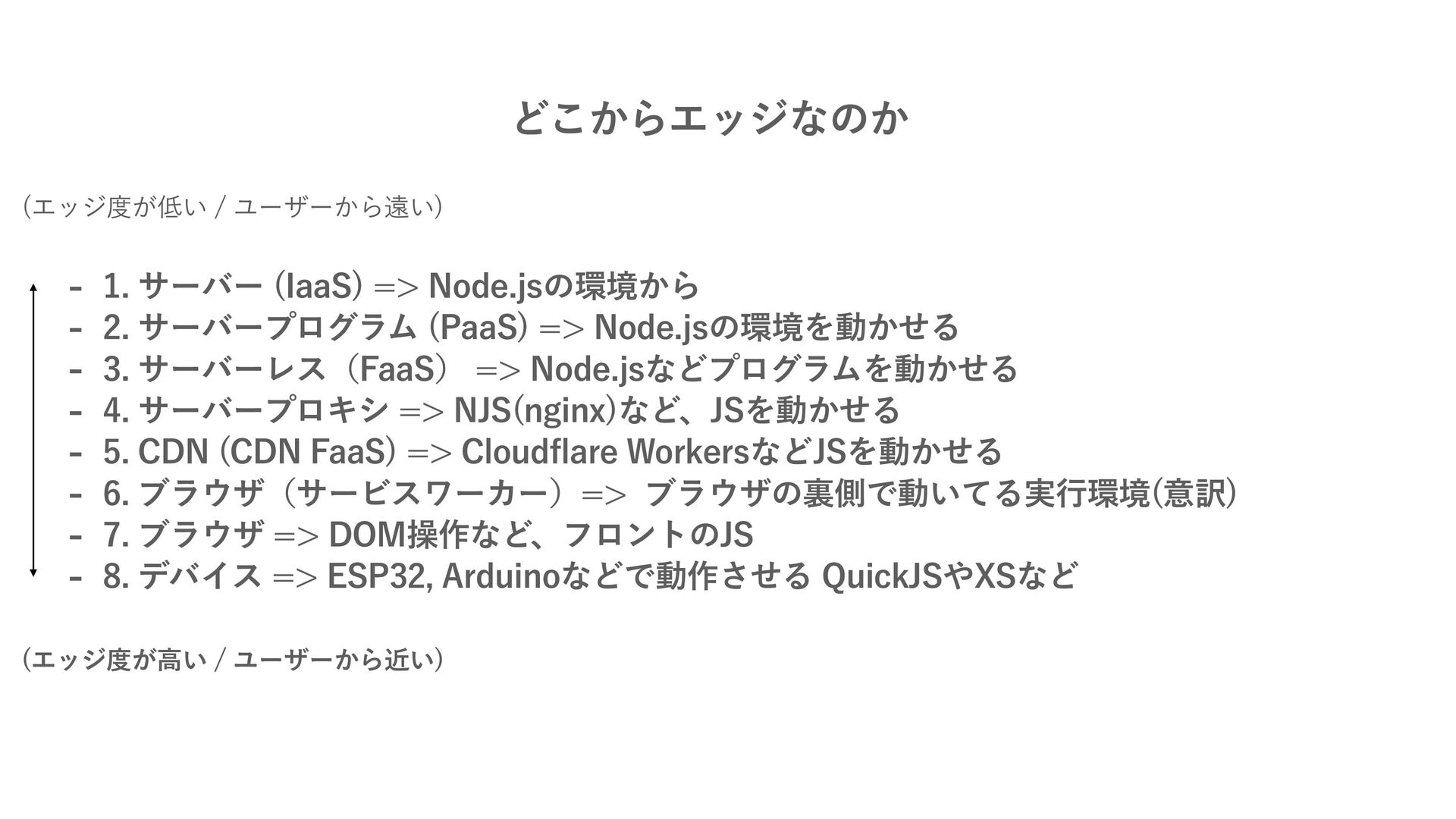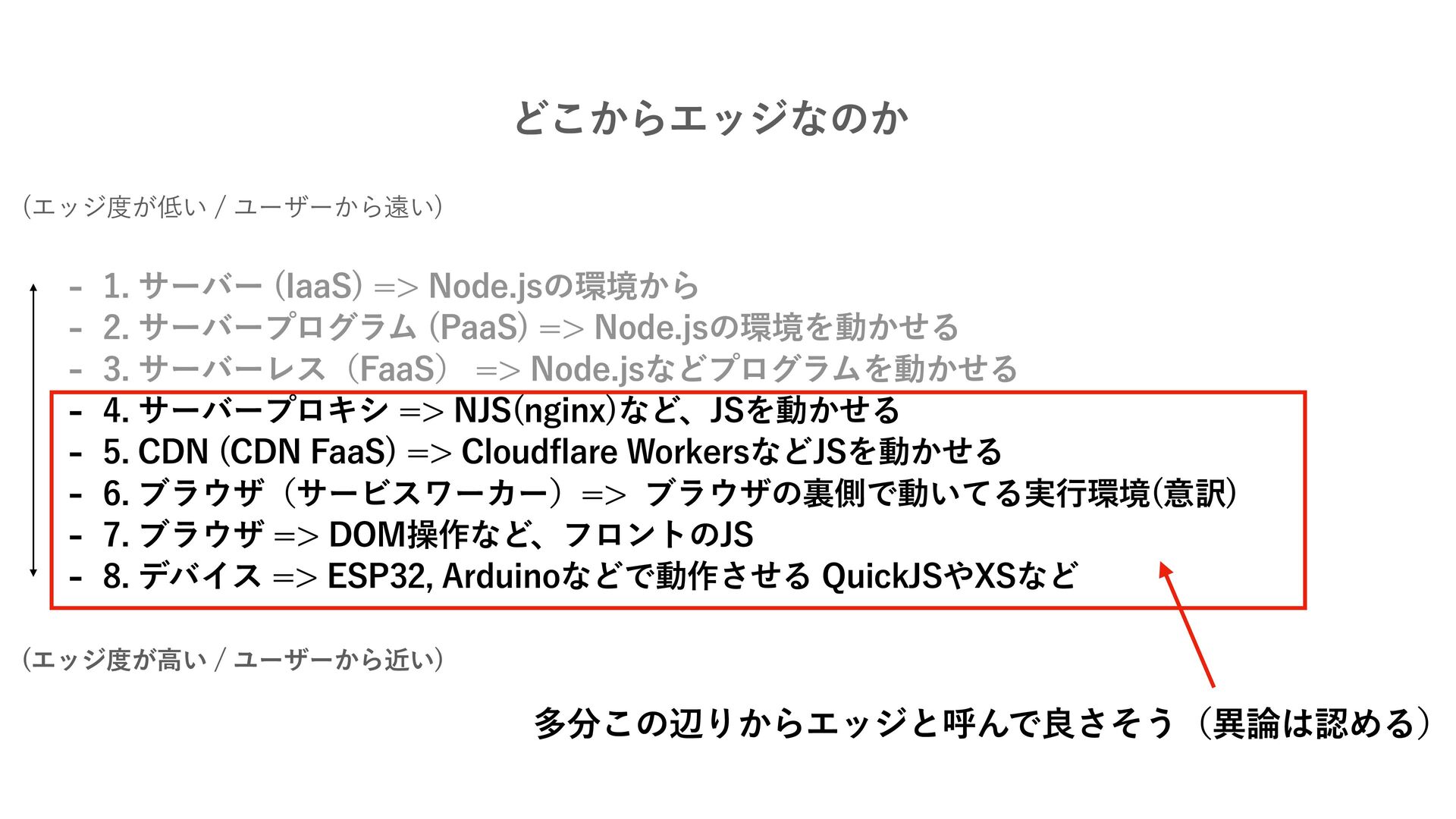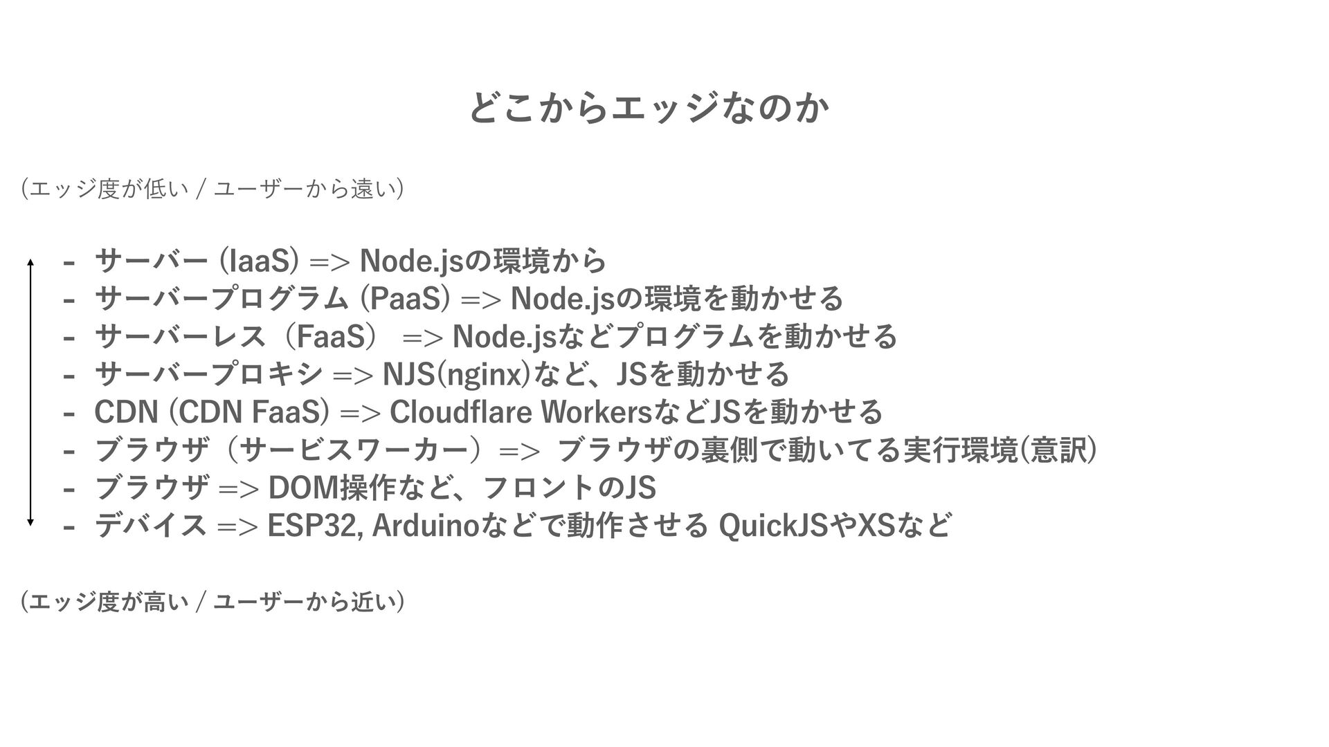 αʔόʔϨεʢ'BB4ʣ/PEFKTͳͲϓϩάϥϜΛಈ͔ͤΔ  αʔόʔϓϩΩγ/+4 OHJOY ͳͲɺ+4Λಈ͔ͤΔ  $%/ $%/'BB4 $MPVEGMBSF8PSLFSTͳͲ+4Λಈ͔ͤΔ  ϒϥ΢βʢαʔϏεϫʔΧʔʣϒϥ΢βͷཪଆͰಈ͍ͯΔ࣮ߦ؀ڥ ҙ༁   ϒϥ΢β%0.ૢ࡞ͳͲɺϑϩϯτͷ+4  σόΠε&41 "SEVJOPͳͲͰಈ࡞ͤ͞Δ2VJDL+4΍94ͳͲ Τοδ౓͕௿͍Ϣʔβʔ͔Βԕ͍ Τοδ౓͕ߴ͍Ϣʔβʔ͔Β͍ۙ ଟ෼͜ͷลΓ͔ΒΤοδͱݺΜͰྑͦ͞͏ʢҟ࿦͸ೝΊΔʣ
