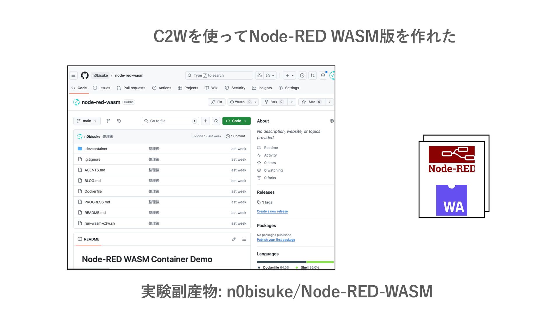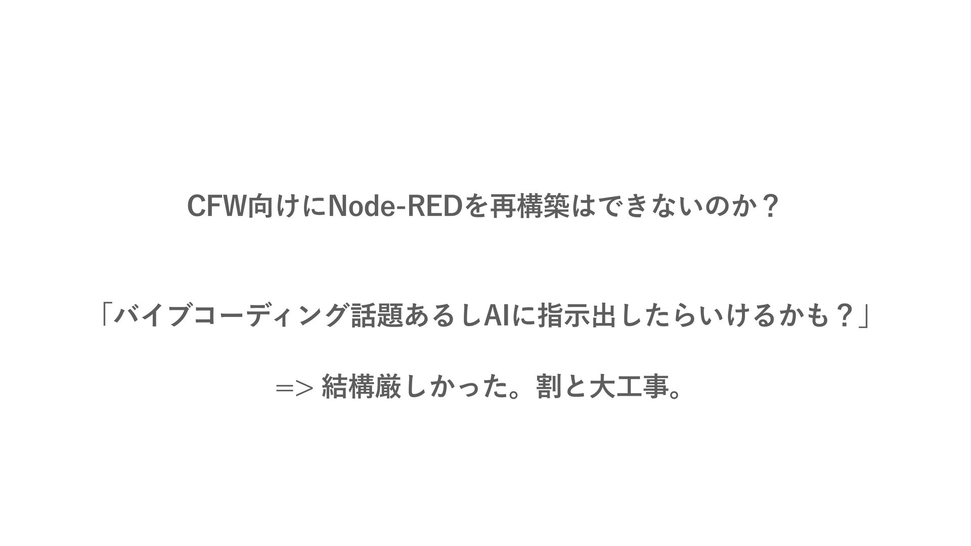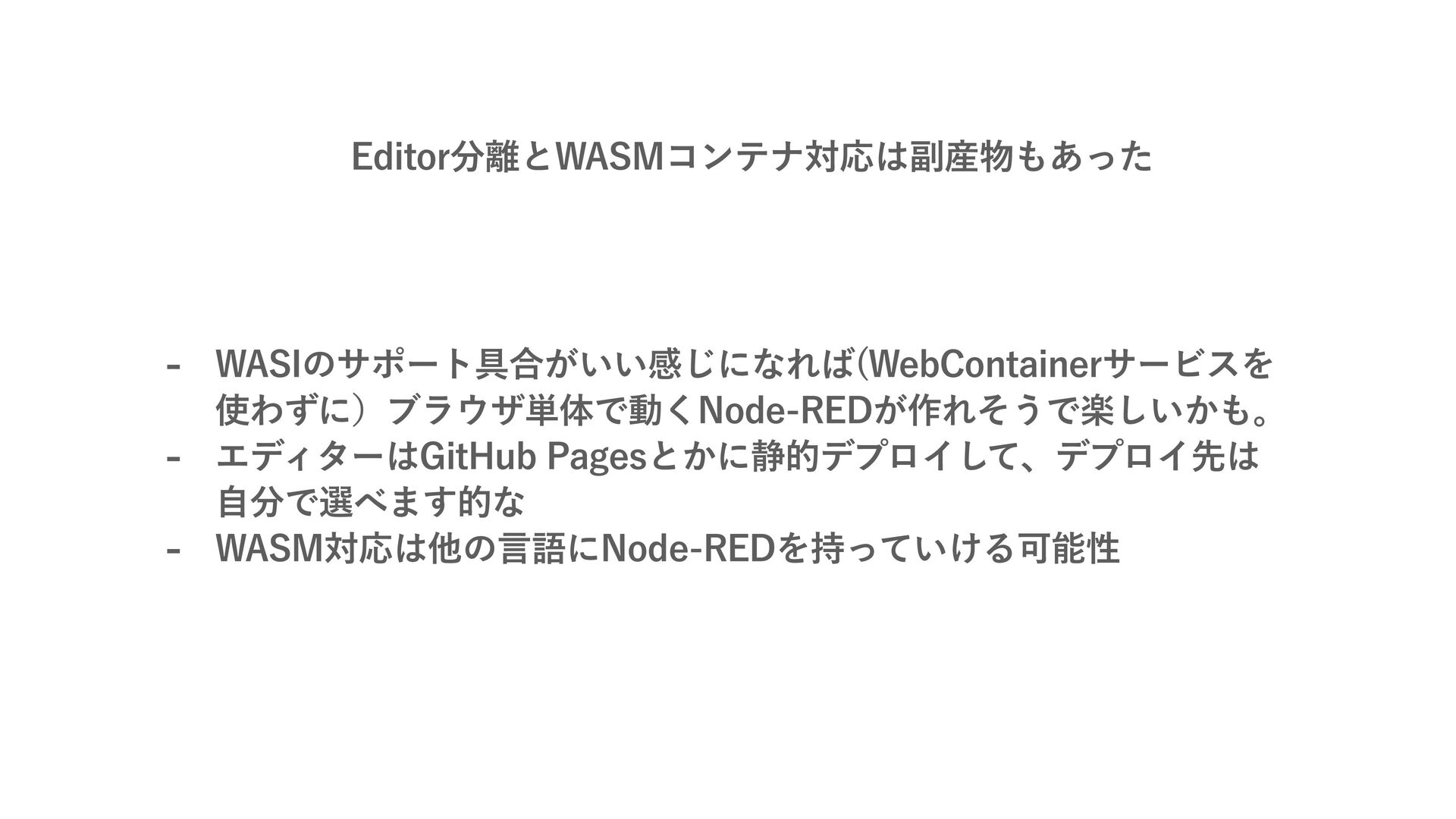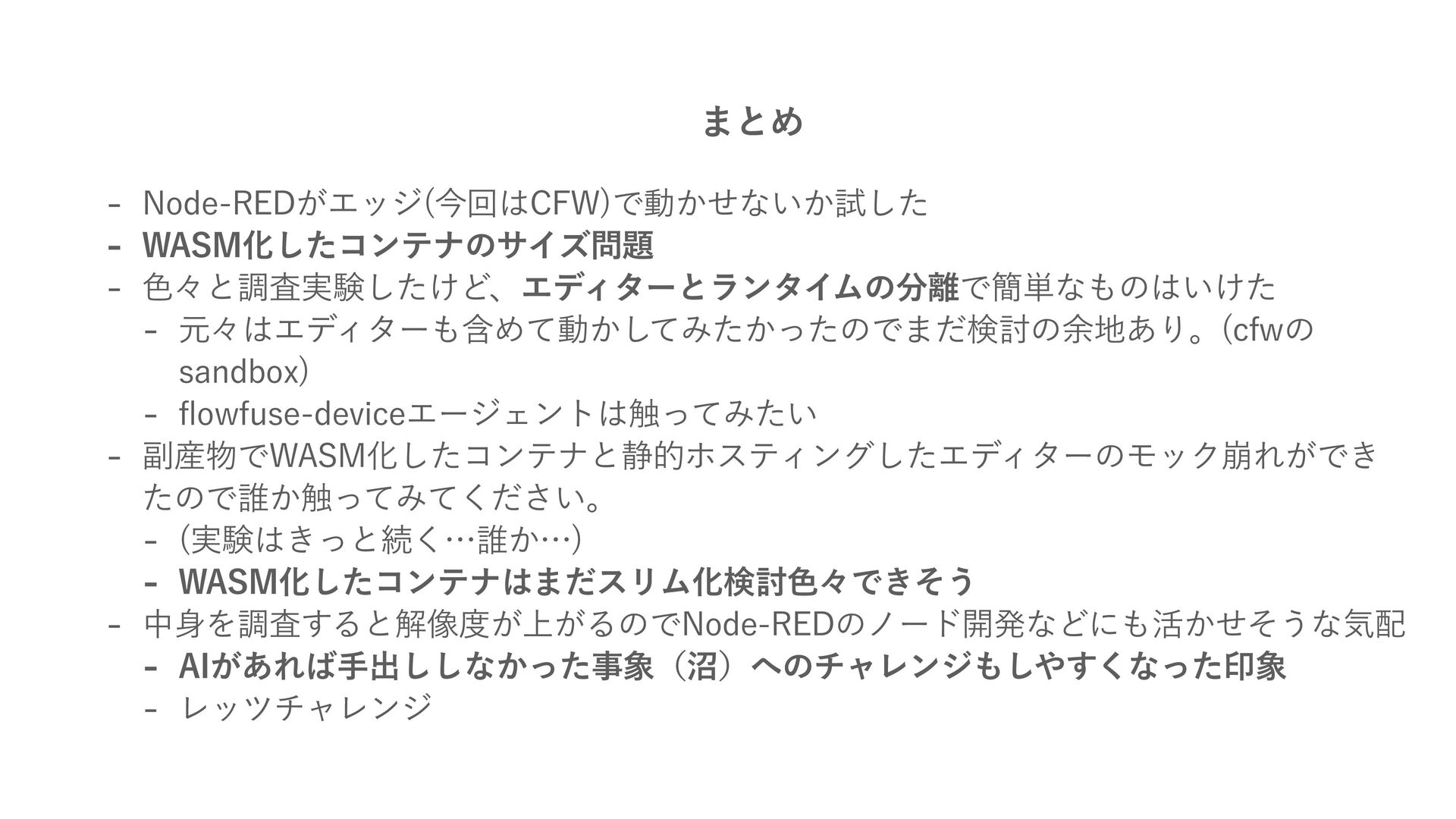 8. ·ͱΊ  /PEF3&%͕Τοδ ࠓճ͸$'8 Ͱಈ͔ͤͳ͍͔ࢼͨ͠  8"4.Խͨ͠ίϯςφͷαΠζ໰୊  ৭ʑͱௐ࣮ࠪݧ͚ͨ͠ͲɺΤσΟλʔͱϥϯλΠϜͷ෼཭Ͱ؆୯ͳ΋ͷ͸͍͚ͨ