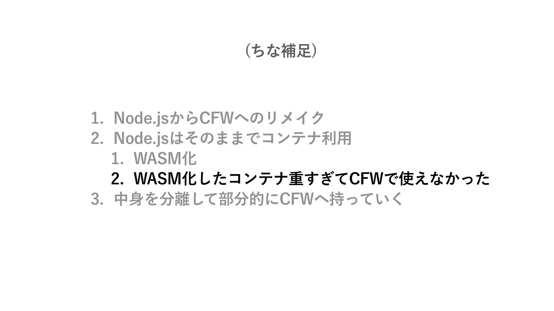 7. ͱࢥͬͨΒࡢ೔4BOECPYొ৔  /PEFKT͔Β$'8΁ͷϦϝΠΫ  /PEFKT͸ͦͷ··Ͱίϯςφར༻  8"4.Խ  8"4.Խͨ͠ίϯςφॏ͗ͯ͢$'8Ͱ࢖͑ͳ͔ͬͨ