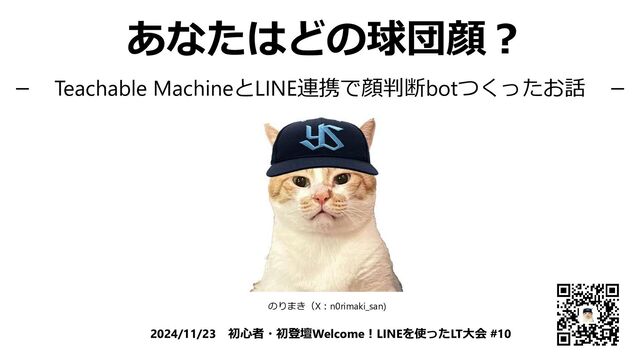 あなたはどの球団顔? 2024/11/23 初心者・初登壇Welcome!LINEを使ったLT大会 #10 のりまき(X:n0rimaki_san) - Teachable MachineとLINE連携で顔判断botつくったお話 -
