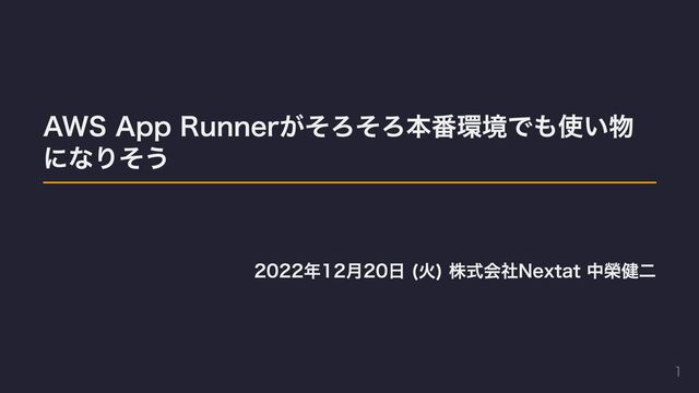 AWS App Runnerがそろそろ本番環境でも使い物 になりそう 2022年12月20日 (火) 株式会社Nextat 中榮健二 1