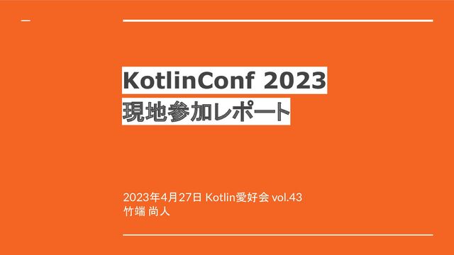 KotlinConf 2023 現地参加レポート 2023年4月27日 Kotlin愛好会 vol.43 竹端 尚人
