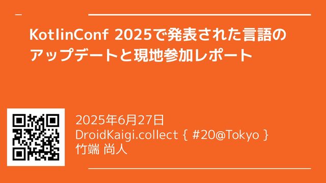 2025年6月27日(金) 「DroidKaigi.collect { #20@Tokyo }」の発表資料です。 https://droidkaigi.connpass.com/event/358113