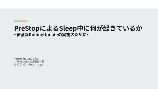 合同会社DMM.com プラットフォーム開発本部 なずな (@na2na_chang) 1 PreStopによるSleep中に何が起きているか ~安全なRollingUpdateの実施のために~