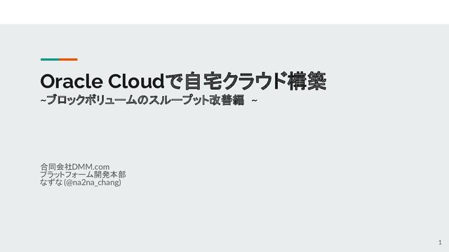 Oracle Cloudで自宅クラウド構築 ~ブロックボリュームのスループット改善編 ~ 合同会社DMM.com プラットフォーム開発本部 なずな (@na2na_chang) 1