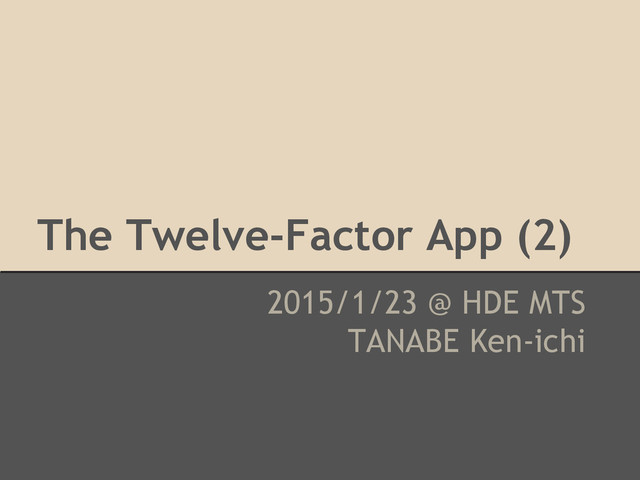 deploys (dev, staging, production, etc) ◦ backing services, credentials, canonical hostname, etc • Not include internal application config ◦ routing, timeout seconds, const, etc • Store config in environment variables • Idependently managed for each deploy • Env vars fits well with the process model • Scale up smoothly as the app naturally expands into more deploys (just spawn new process)