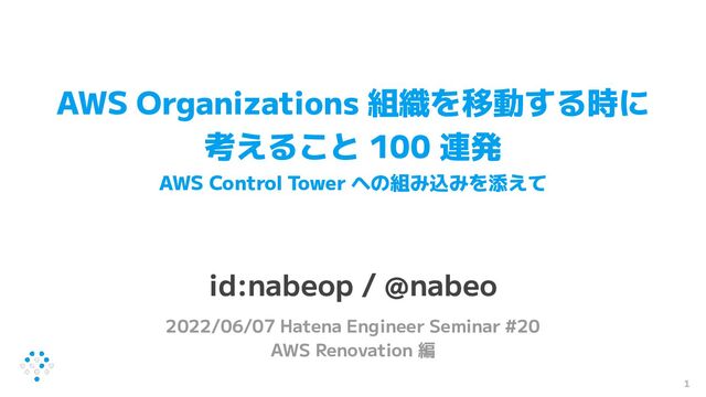 id:nabeop / @nabeo 2022/06/07 Hatena Engineer Seminar #20 AWS Renovation 編 1