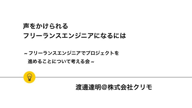 Λ͔͚ΒΕΔ ϑϦʔϥϯεΤϯδχΞʹͳΔʹ ~ ϑϦʔϥϯεΤϯδχΞͰϓϩδΣΫτΛ ɹਐΊΔ͜ͱʹ͍ͭͯߟ͑Δձ ~ ᬑୡ໌ˏגࣜձࣾΫϦϞ