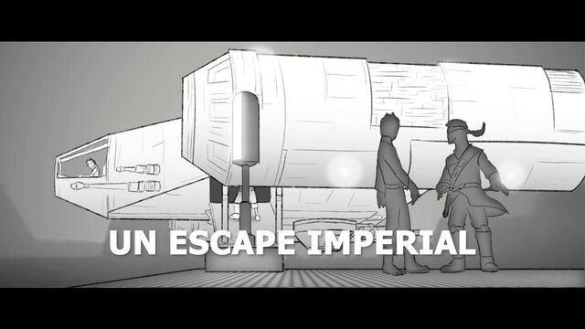 Secuencia de Storyboard de una película ambientada en el mundo de Star Wars. Dos contrabandistas rebeldes intentan escapar de una base imperial fortificada.