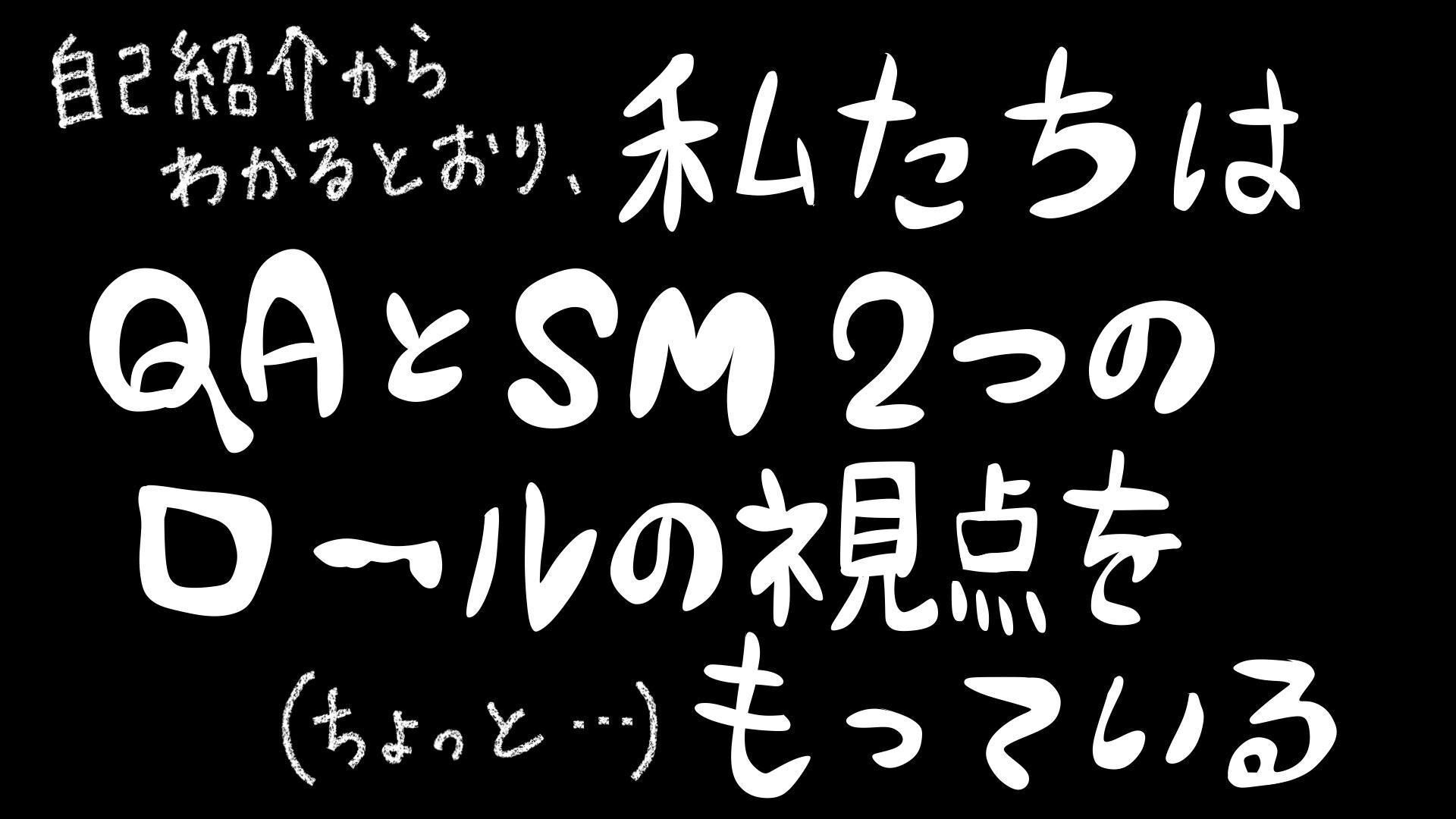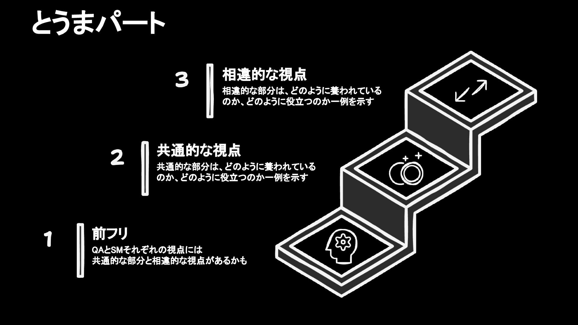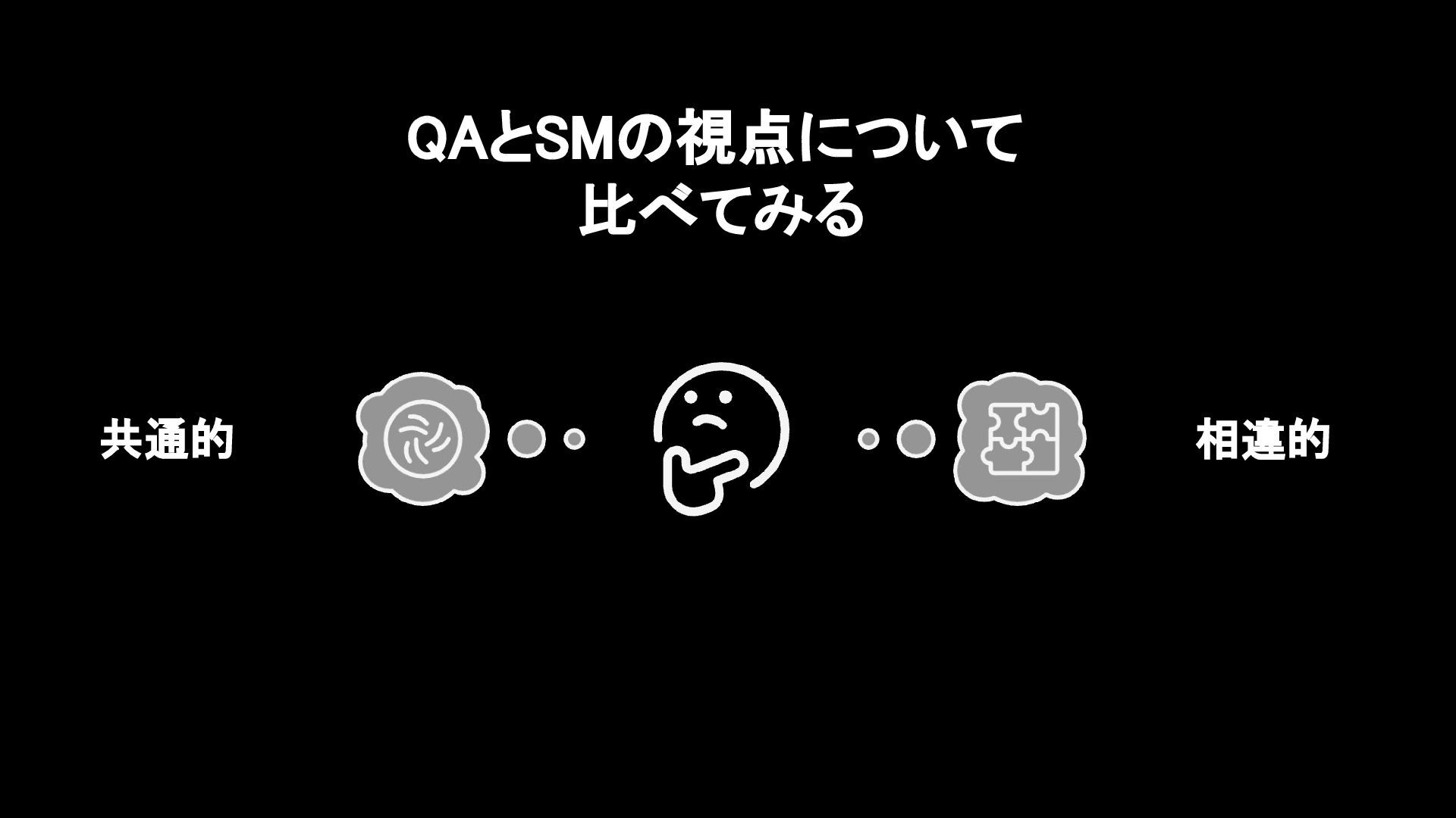 とうまパート 前フリ QAとSMそれぞれの視点には 共通的な部分と相違的な視点があるかも 共通的な視点 共通的な部分は、どのように養われている