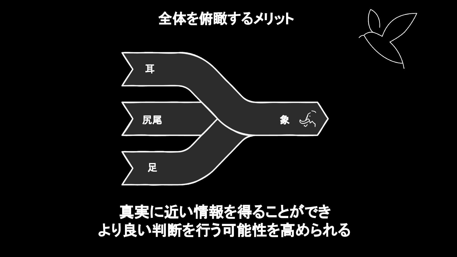 全体を俯瞰するメリット 耳 尻尾 足 象 真実に近い情報を得ることができ より良い判断を行う可能性を高められる
