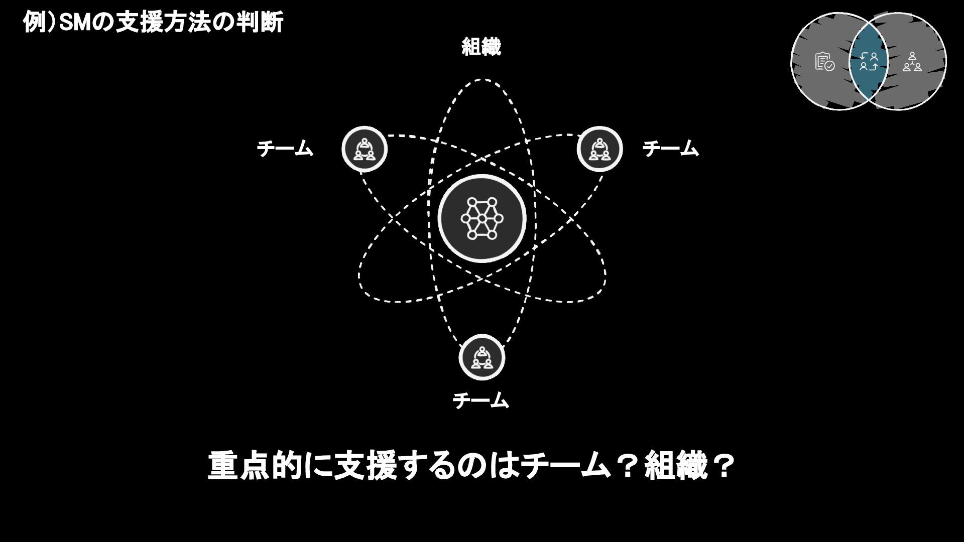 重点的に支援するのはチーム?組織? チーム チーム チーム 組織 例)SMの支援方法の判断