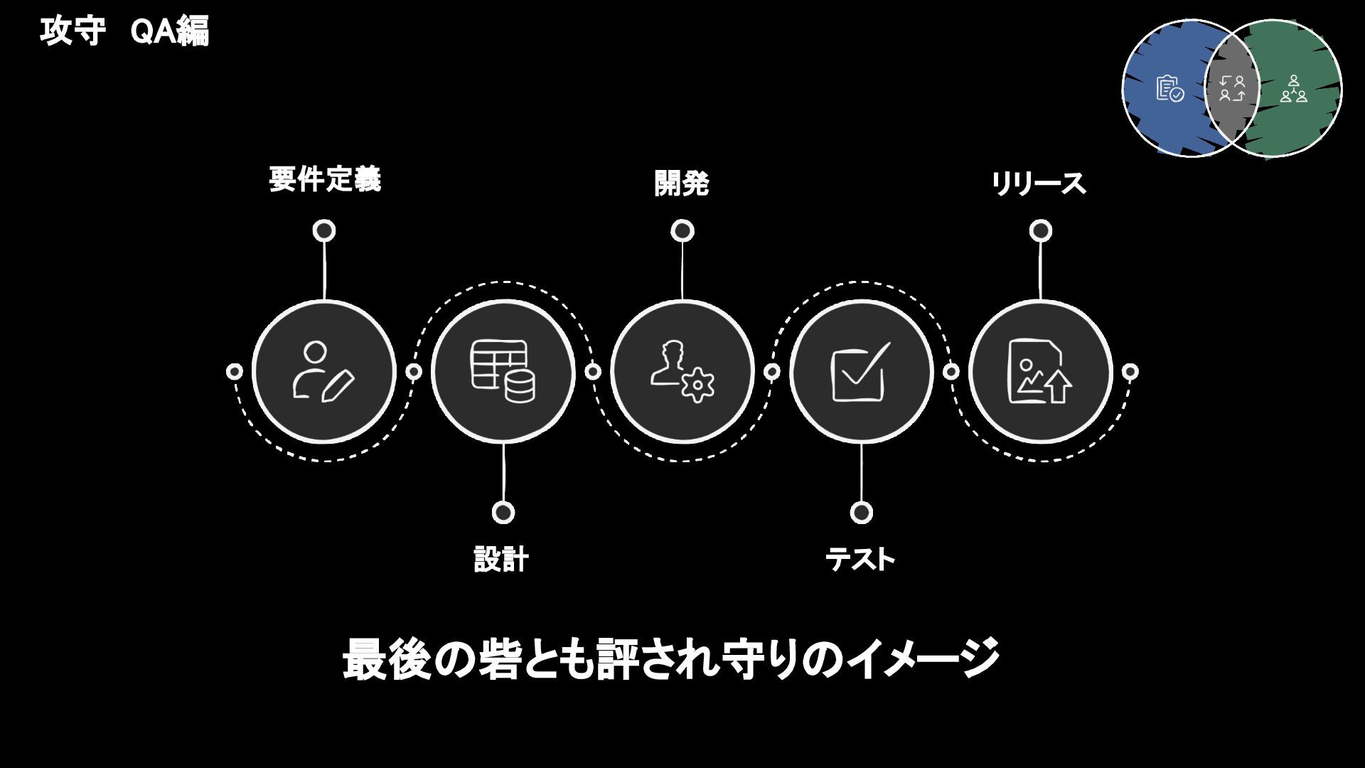 攻守 QA編 要件定義 開発 設計 テスト リリース 最後の砦とも評され守りのイメージ