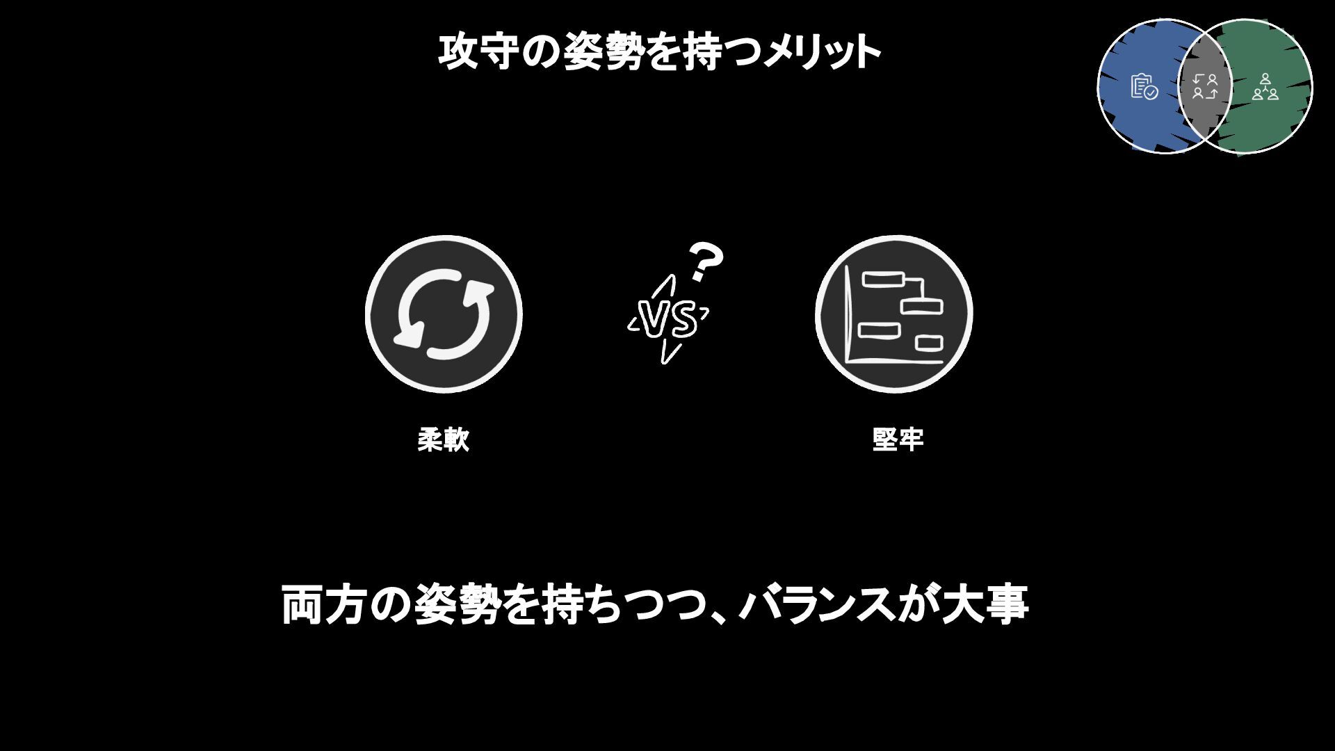 両方の姿勢を持ちつつ、バランスが大事 ? 堅牢 柔軟 攻守の姿勢を持つメリット