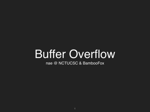 記錄著 Func stack frame base 的位址 • void Func(int a, int b) char buf[12]; Previous ebp Return Address a b Stack EBP = ESP growth Low High push ebp mov ebp, esp sub esp, 0xc ======= Main Stack Frame Func Stack Frame 12