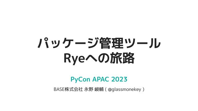 1. © 2012-2023 BASE, Inc. 1 PyCon APAC 2023 BASE株式会社 永野