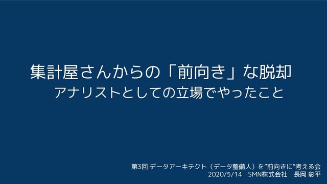 第3回 データアーキテクト(データ整備人)を”前向きに”考える会 https://analytics-and-intelligence.connpass.com/event/174369/presentation/