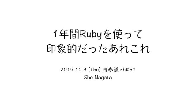 1年間Rubyを使って 印象的だったあれこれ 2019.10.3 (Thu) 表参道.rb#51 Sho Nagata