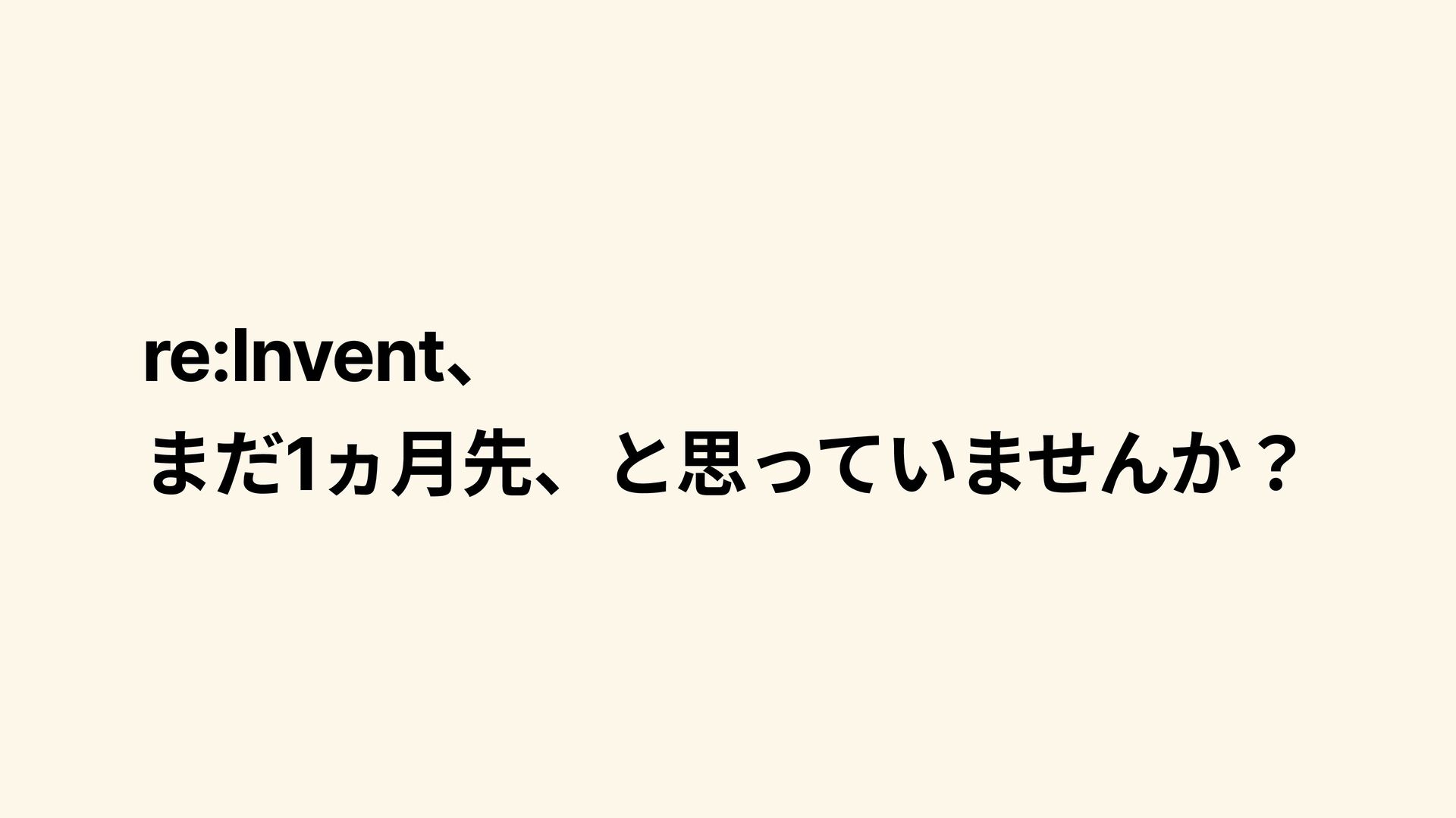 re:Invent、 まだ1ヵ月先、と思っていませんか?