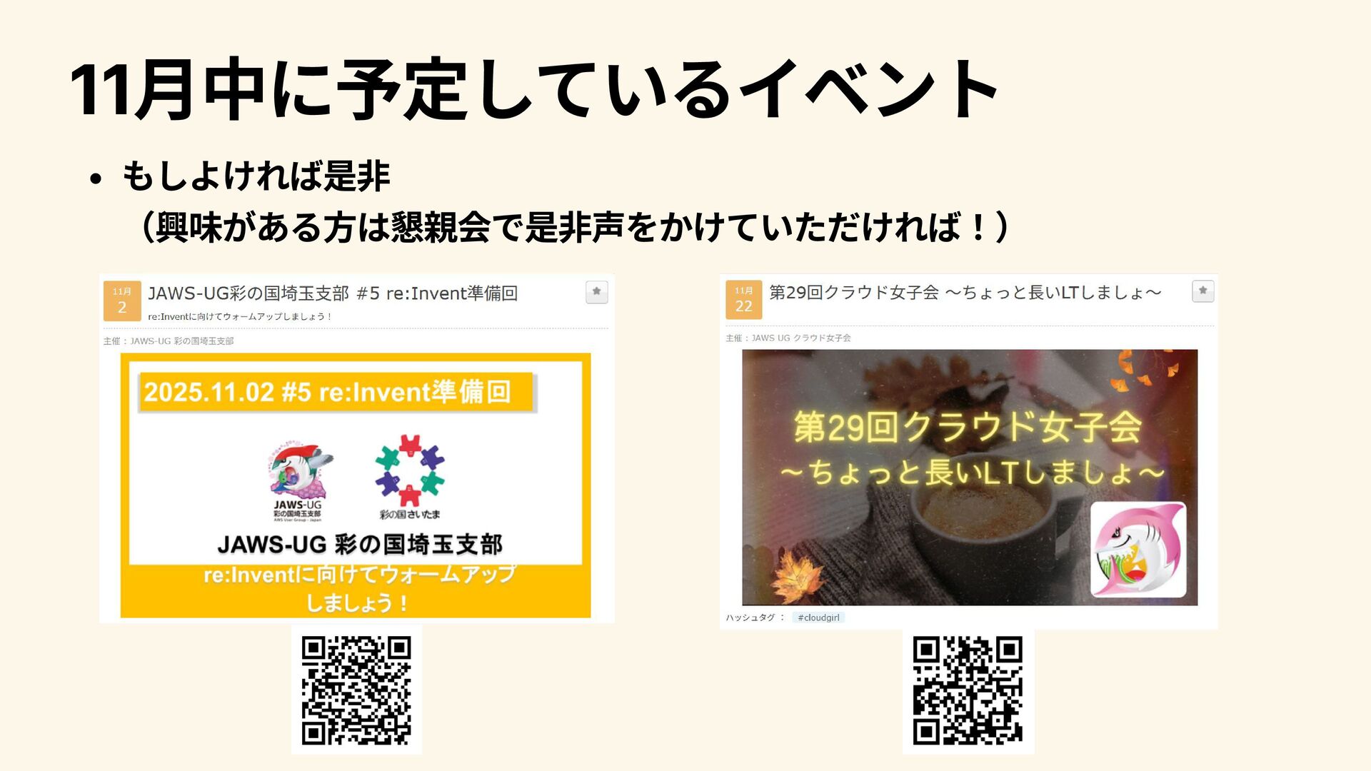 もしよければ是非 (興味がある方は懇親会で是非声をかけていただければ!) 11月中に予定しているイベント