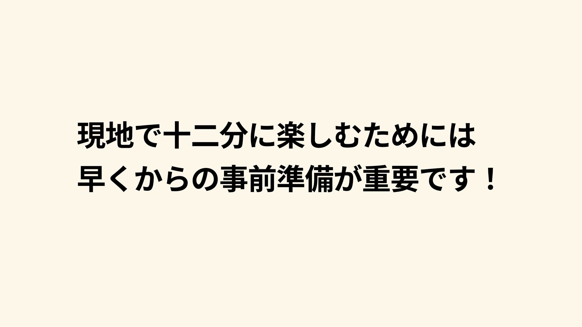 現地で十二分に楽しむためには 早くからの事前準備が重要です!