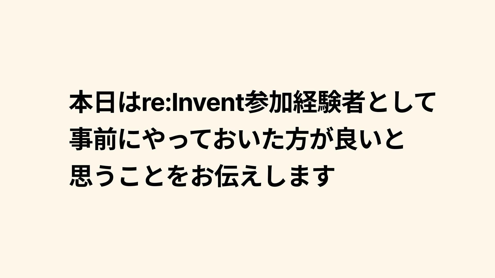 本日はre:Invent参加経験者として 事前にやっておいた方が良いと 思うことをお伝えします