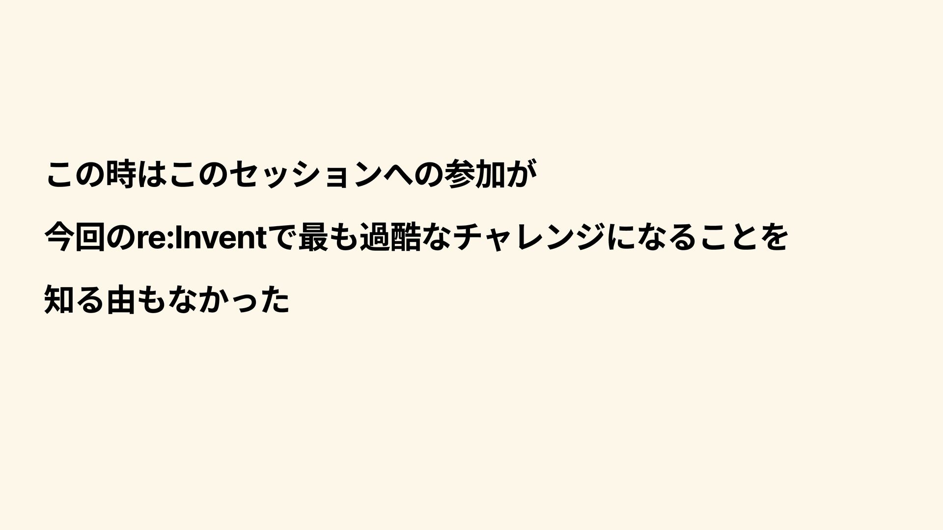 この時はこのセッションへの参加が 今回のre:Inventで最も過酷なチャレンジになることを 知る由もなかった