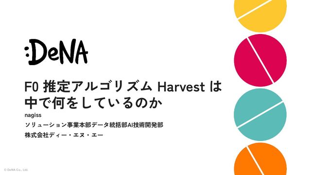 © DeNA Co., Ltd. 1 nagiss ソリューション事業本部データ統括部AI技術開発部 株式会社ディー・エヌ・エー F0 推定アルゴリズム