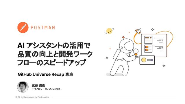 AIがソフトウェア開発の方法を変えつつあり、生成AIモデルの利用が価値をもたらすことにもはや疑う余地はありません。今日、AIと自然言語ツールを組み合わせることで、あらゆるスキルセットの専門家がテクノロジーを設計、提供、改善できるようになっています。本セッションでは、PostmanのAI搭載アシスタントPostbotがどのようにユーザーを支援し、プロダクト品質の改善や開発ワークフローの効率化を実現できるかをご紹介します。GitHub Universe Recap 東京での発表資料です。