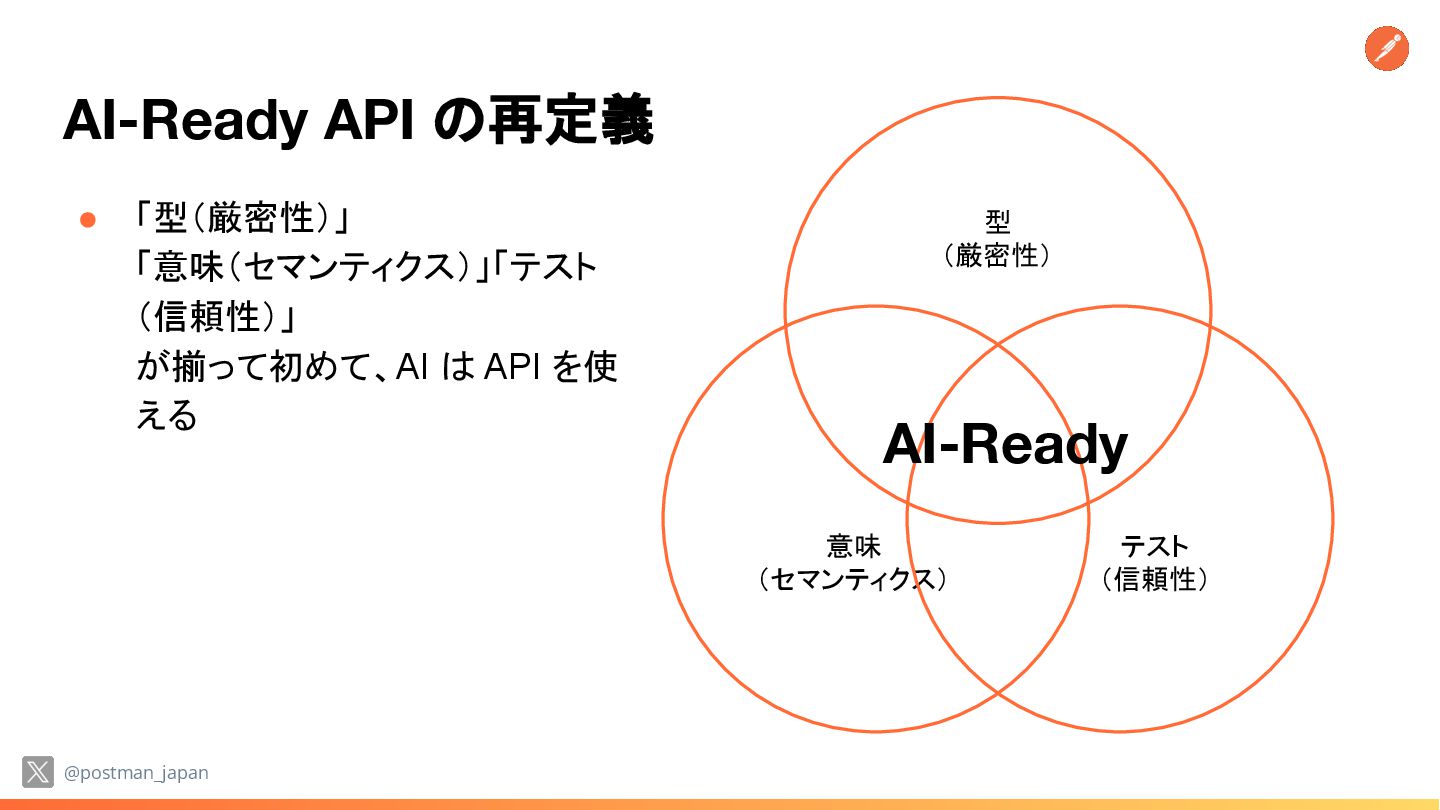 を使 える @postman_japan 型 (厳密性) 意味 (セマンティクス) テスト (信頼性) AI-Ready