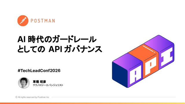 1. All rights reserved by Postman Inc 草薙 昭彦 テクノロジーエバンジェリスト AI