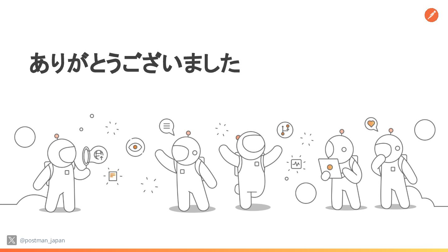 API 機能障害 ↓ (ドキュメントの標準化、テス ト自動化、 ワークフロー効率化) 開発生産性 ↑ (仕様の再利用、 環境の標準化、API コレクションの共有) 統合 API 管理プラットフォーム 仕様設計 テスト ガバナンス CI/CD 標準化された API ライフサイクルと変更管理